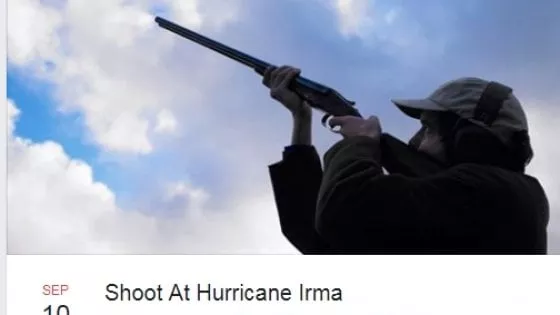 ha creato una pagina su Facebook, poco prima dell’arrivo del tifone Irma sulle Isole Key, invitando tutti ad «andare a sparare all’uragano».