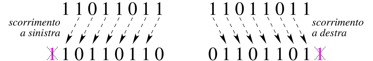 Operazioni di scorrimento logico (Logical shifting, numeri senza segno)